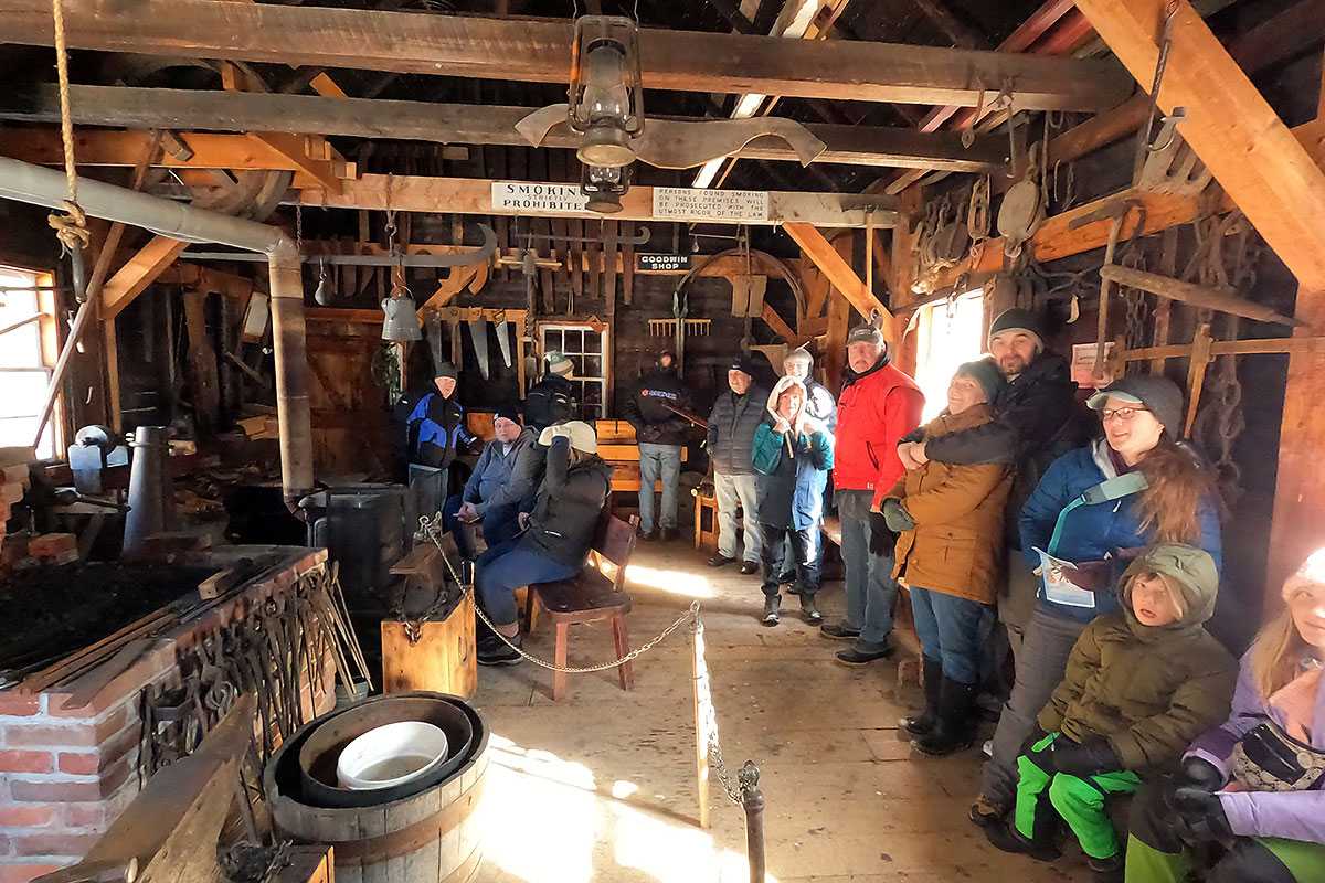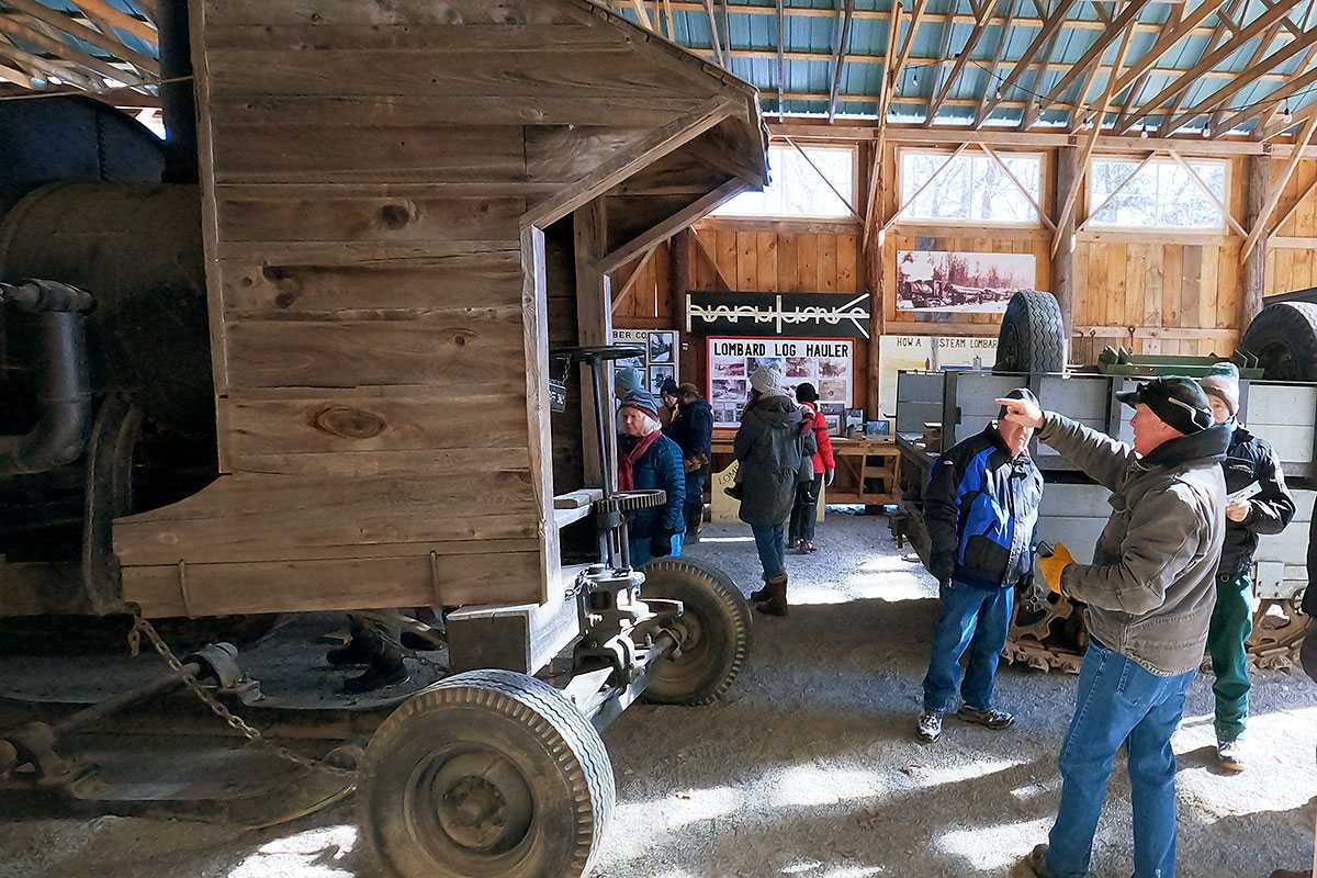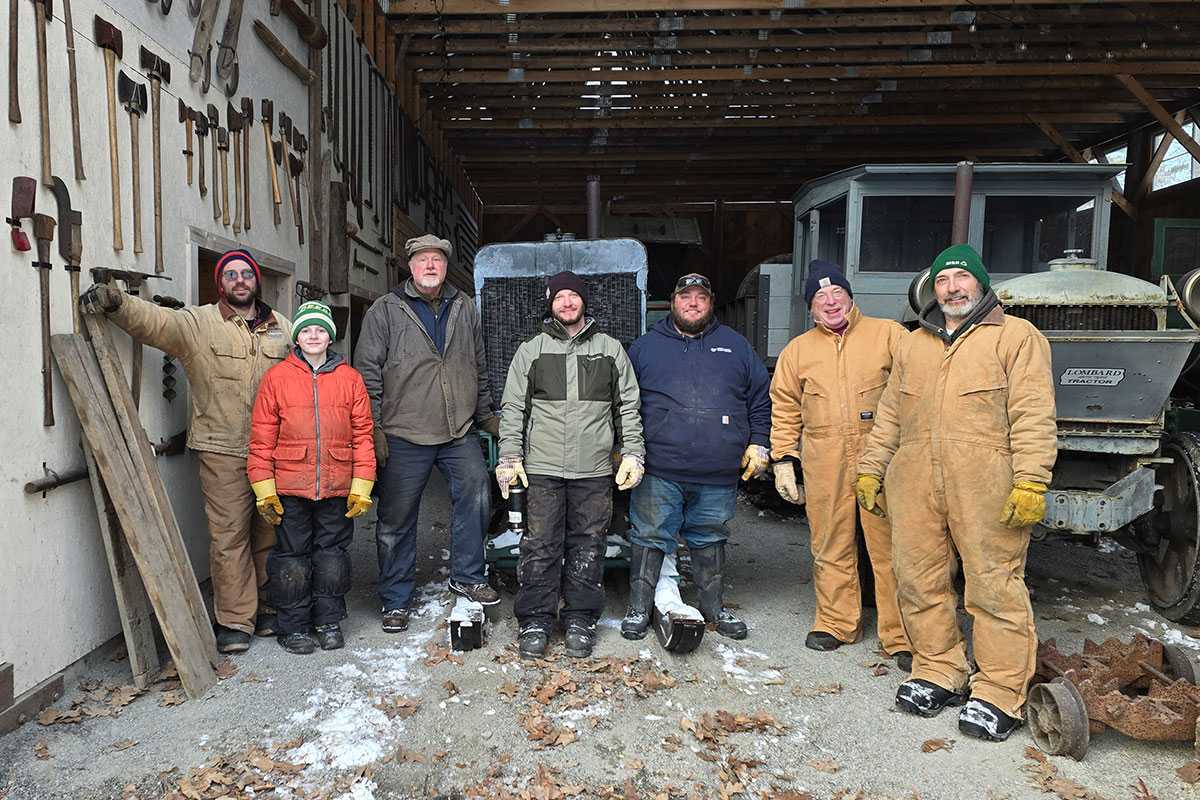 The healthy bellow of a Lombard Tractor-Truck echoed through the snowy woods as it hauled sleds along the haul road. The rasp of a crosscut saw biting through timber, the rhythmic ring of a blacksmith’s hammer on hot steel—all amid the snow-covered splendor of a Maine forest. These sights and sounds brought history vividly to life, offering our visitors a true glimpse into the long, cold winters of Maine’s historic lumber camps.